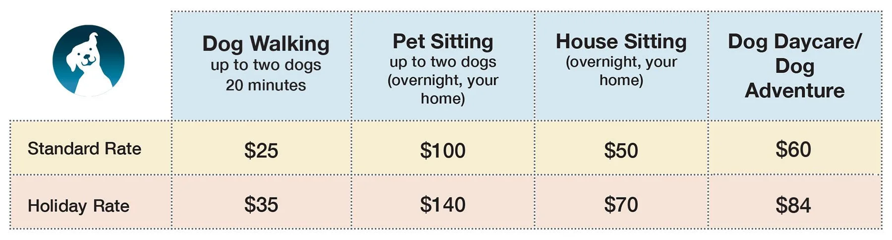 If you refer a neighbor (must be within three-block radius) receive two free dog walks or $40 off pet sitting**.